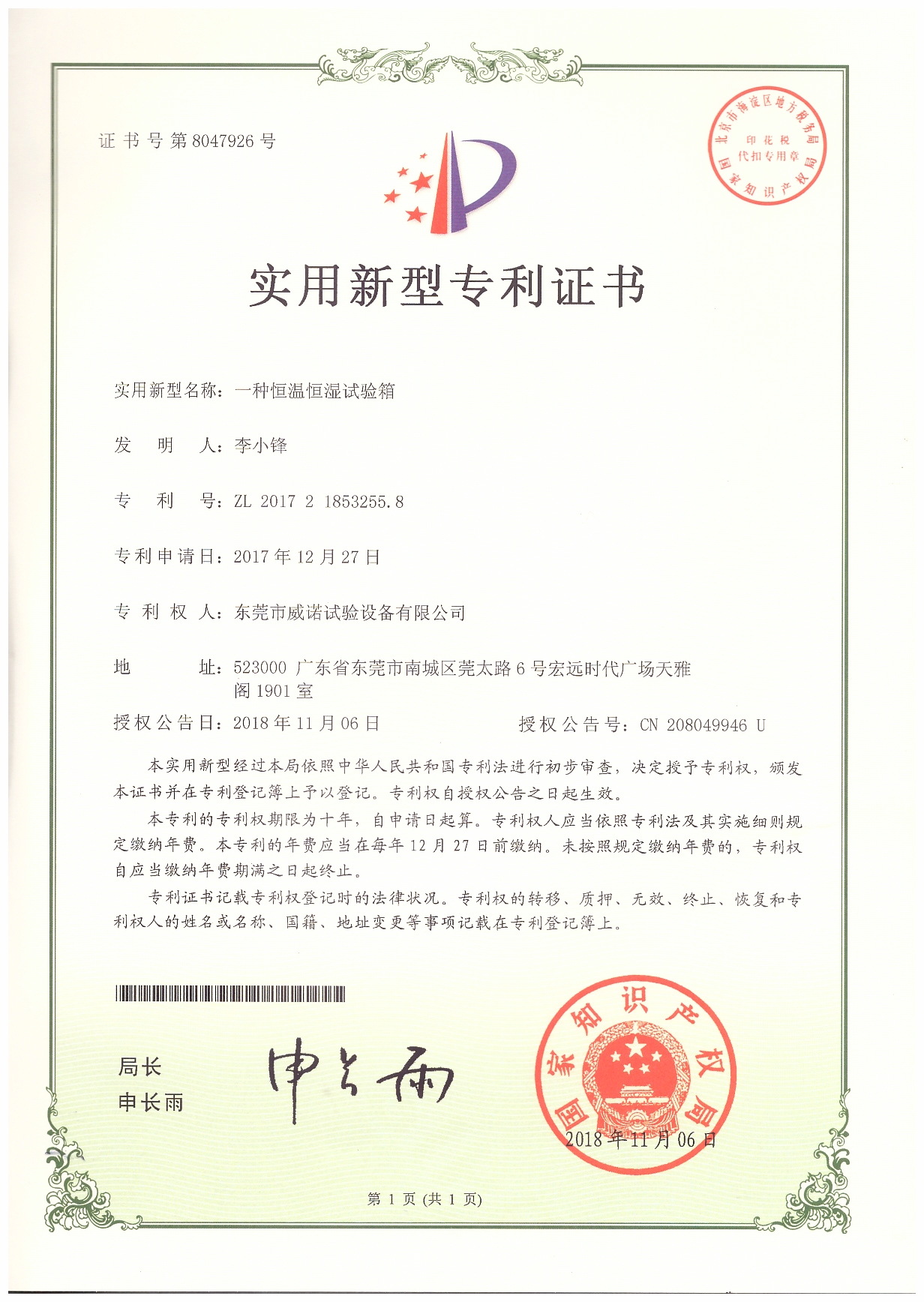 東莞市威諾試驗設備有限公司,于2013年正式成立,坐落 于擁有“世界工廠”美譽的東莞市。專注于環境可靠性試驗設備 的生產、銷售及售后服務,"注重產品質量。著重售后服務”是 我們一直遵循的宗旨。結合自身技術優勢、借鑒用戶實際應用 中反饋及建議,研發、生產一系列環境可靠性試驗設備,為眾 多行業、企事業單位等機構的質量提升、保障略盡綿力。詳細介紹